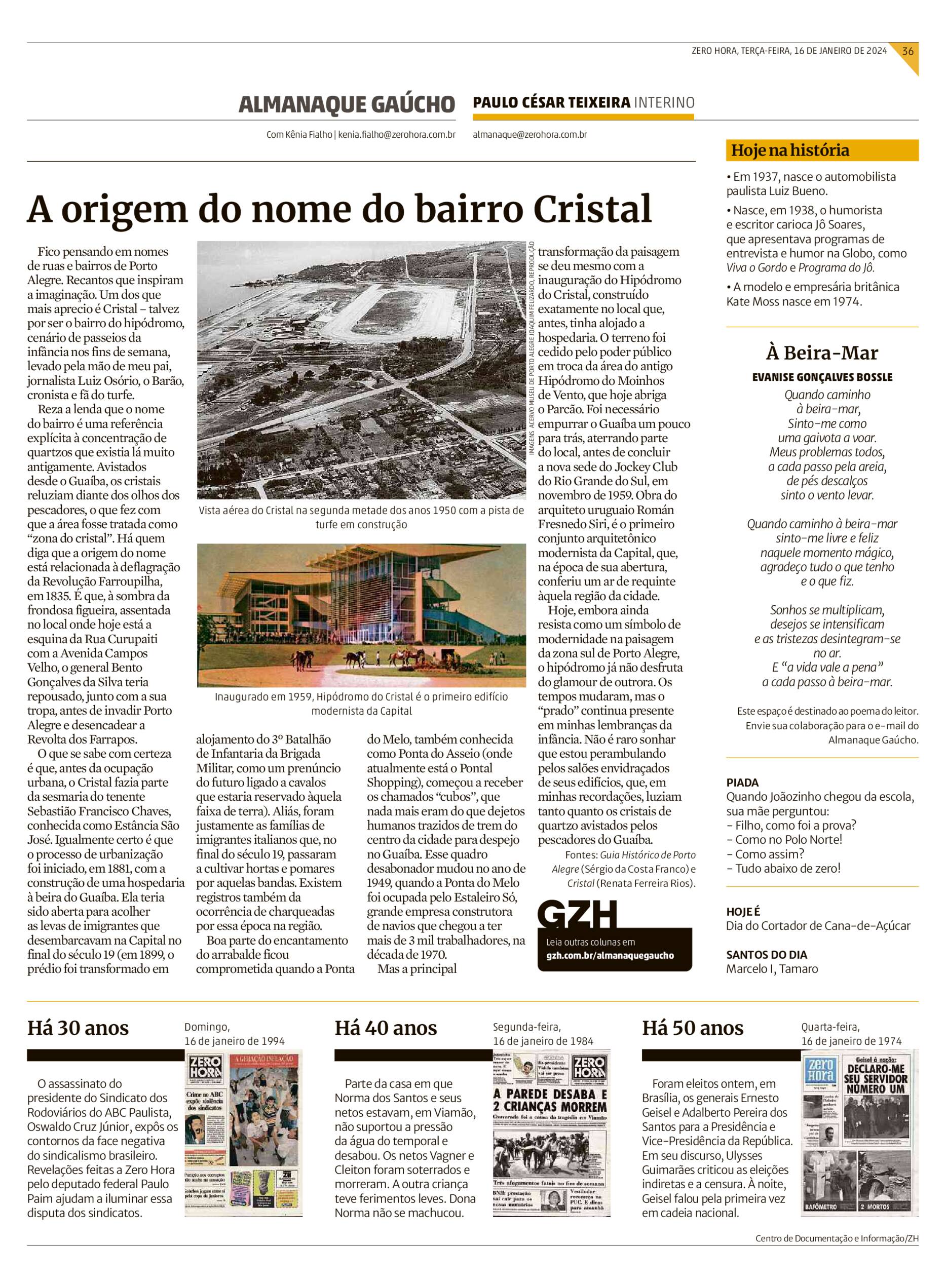 um século: Correio de Povo do dia 16 de janeiro, quarta-feira de 1924,