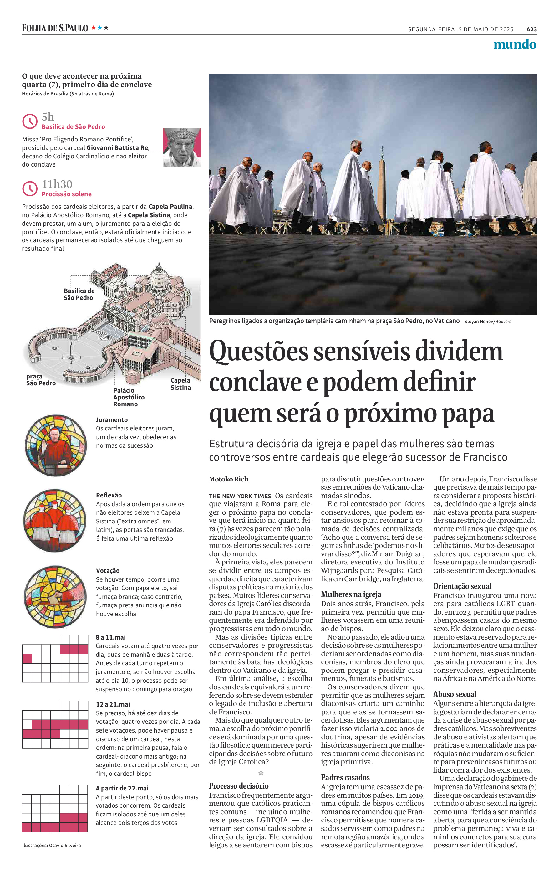 sensíveis dividem conclave e podem definir quem será o próximo papa –